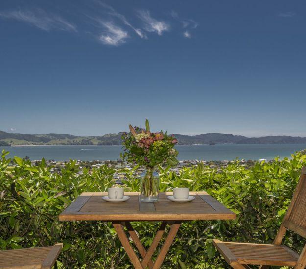 Mercury Ridge’s two lodge rooms enjoy unobstructed views of the sparkling waters of Mercury Bay with spacious and comfortable super king or twin beds.