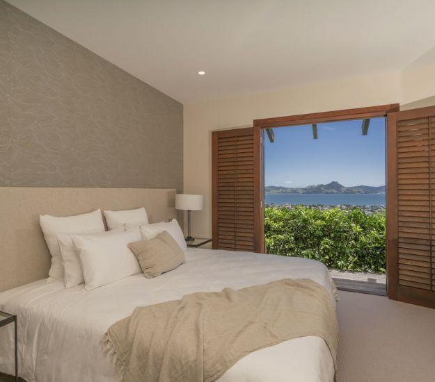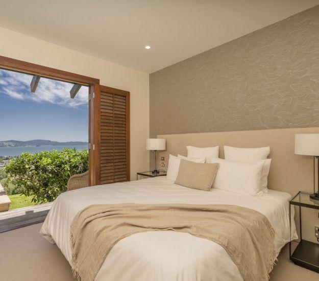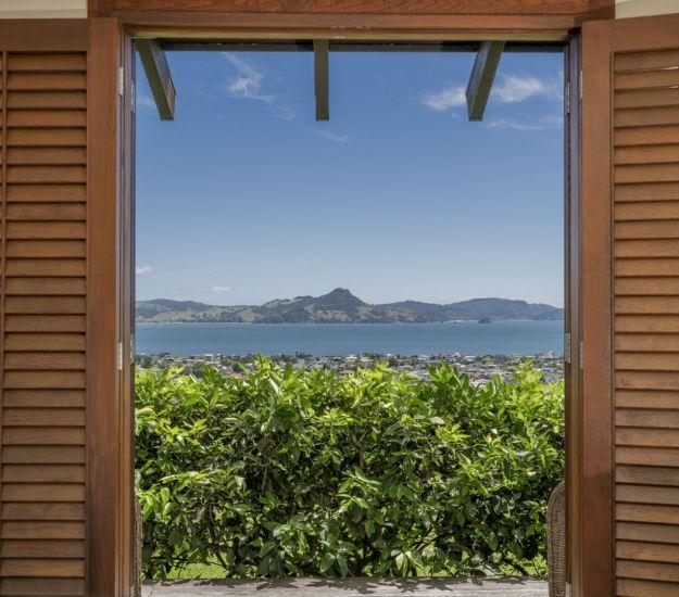 Mercury Ridge’s two lodge rooms enjoy unobstructed views of the sparkling waters of Mercury Bay.